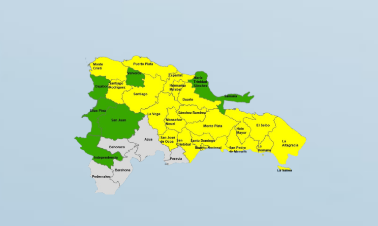 En alerta verde se encuentran: María Trinidad Sánchez, Valverde, Independencia, Samaná, Dajabón, Elías Piña y San Juan.